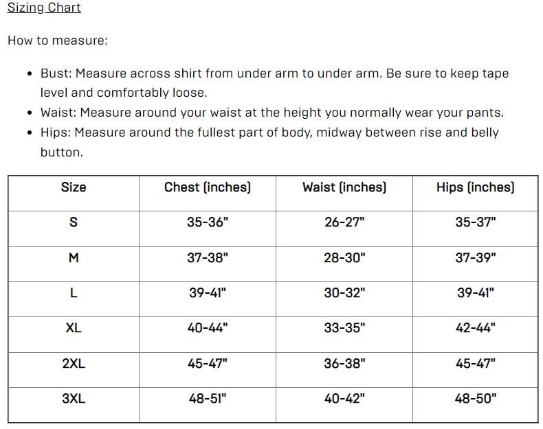 • Bust: Measure across shirt from under arm to under arm. Be sure to keep tape level and comfortably loose.